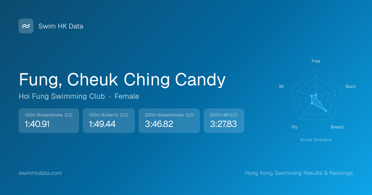 | 50m Breaststroke | 47.85 2019-12-06 | 3 | 37 | 2019-12-06 |