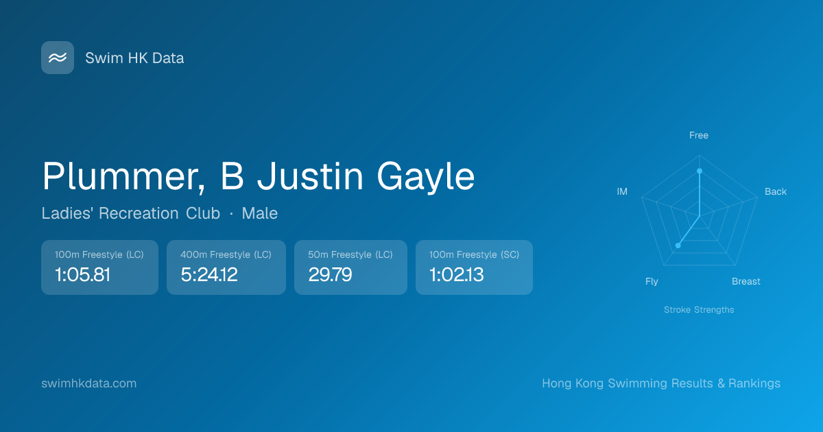 | 100m Freestyle | 1:02.13 2021-09-29 | 1 | 51 | 2021-09-29 |