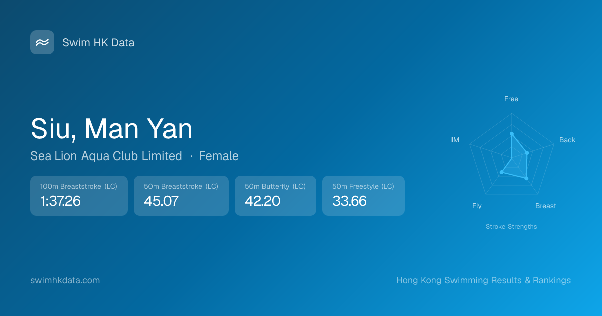 | 50m Butterfly | 42.20 2021-06-22 | 18 | 10 | 2021-06-22 |
