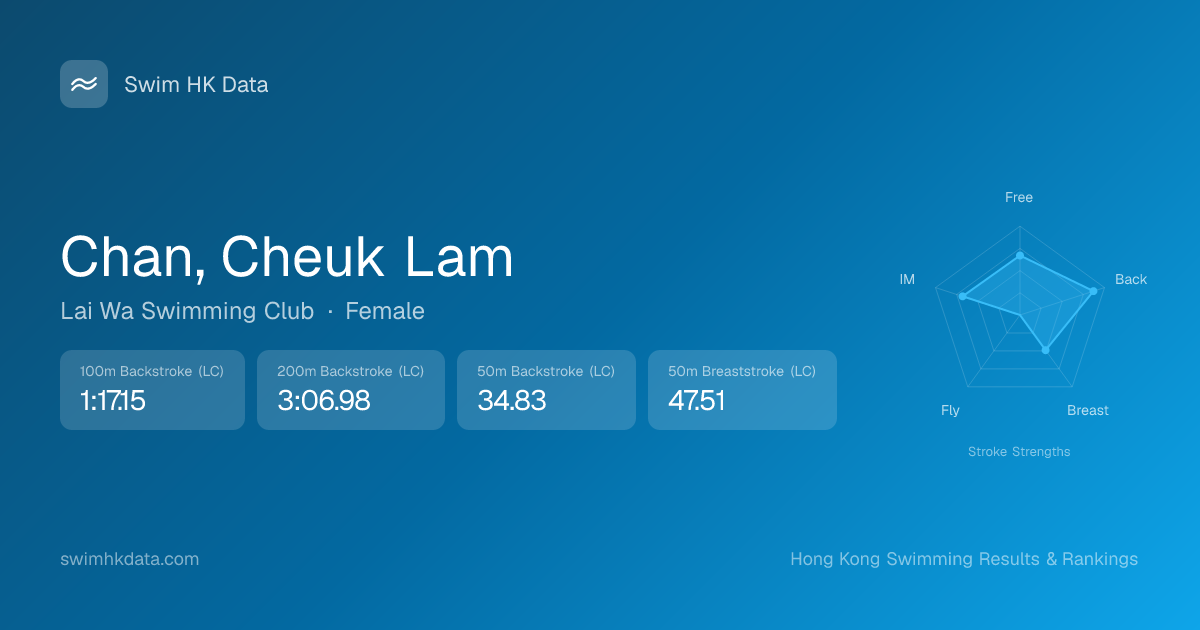 | 50m Backstroke | 34.83 2024-10-02 | 8 | 12 | 2024-10-02 |