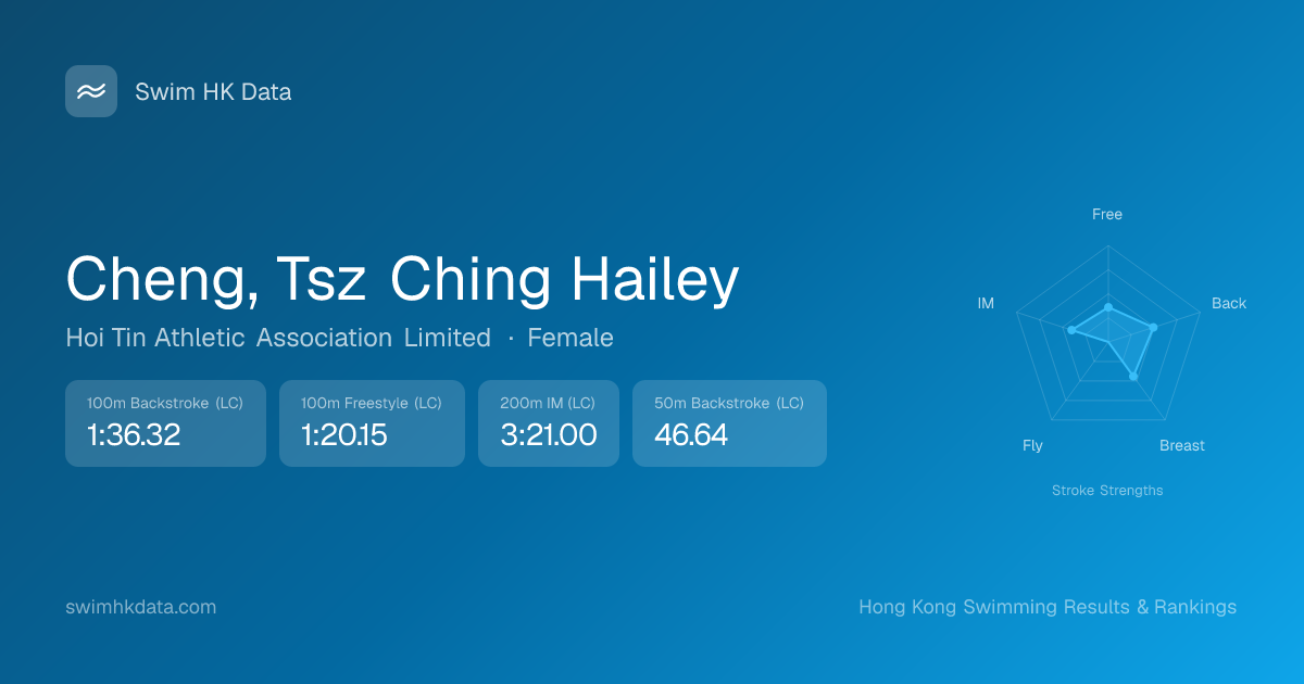 | 50m Breaststroke | 46.79 2023-12-12 | 18 | 10 | 2023-12-12 |