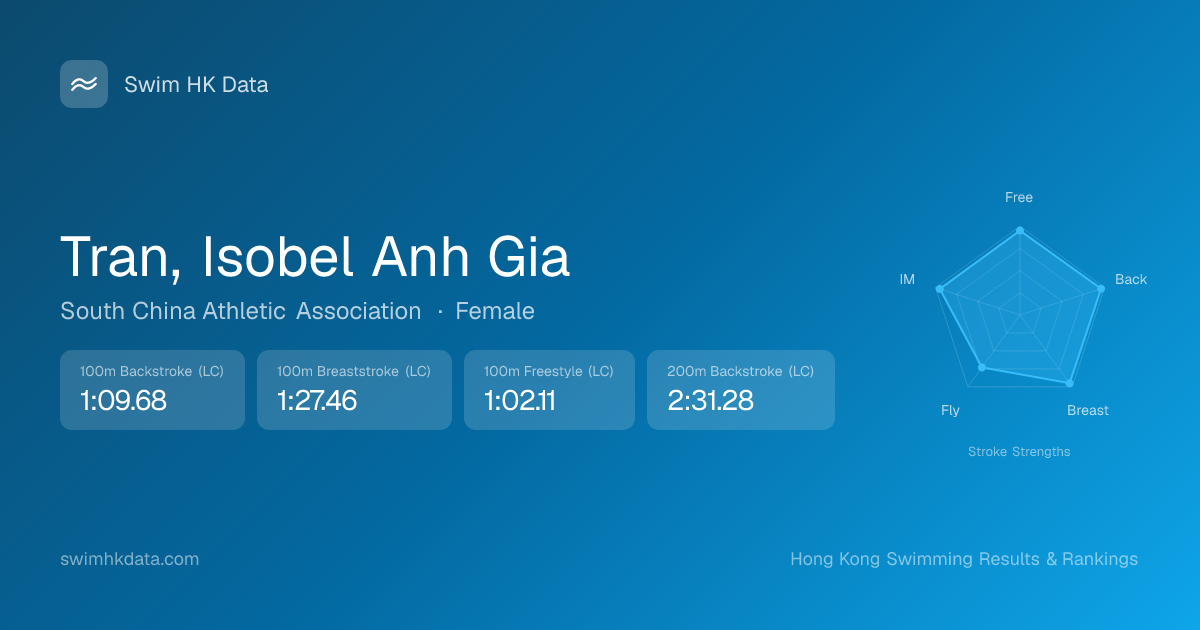 | 100m Freestyle | 1:03.89 2025-11-03 | 3 | 12 | 2025-11-03 |