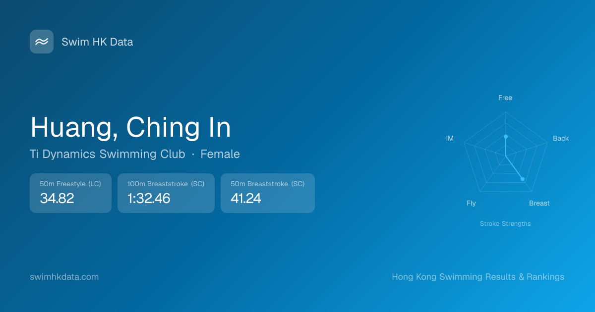 | 50m Breaststroke | 41.24 2023-01-05 | 11 | 14 | 2023-01-05 |