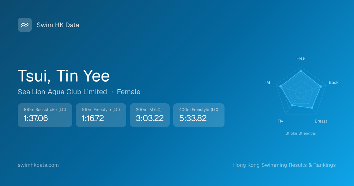 | 50m Freestyle | 29.53 2026-02-10 | 12 | 12 | 2026-02-10 |