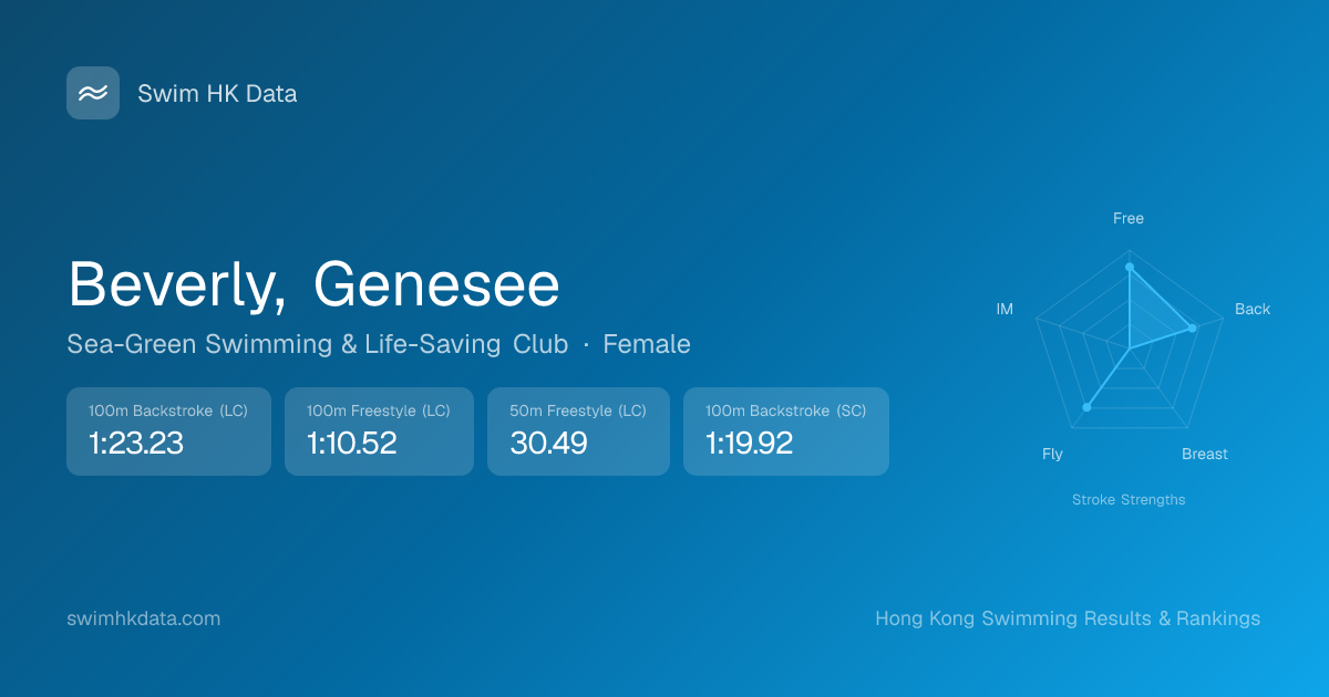 | 100m Backstroke | 1:23.23 2025-08-27 | 33 | 13 | 2025-08-27 |