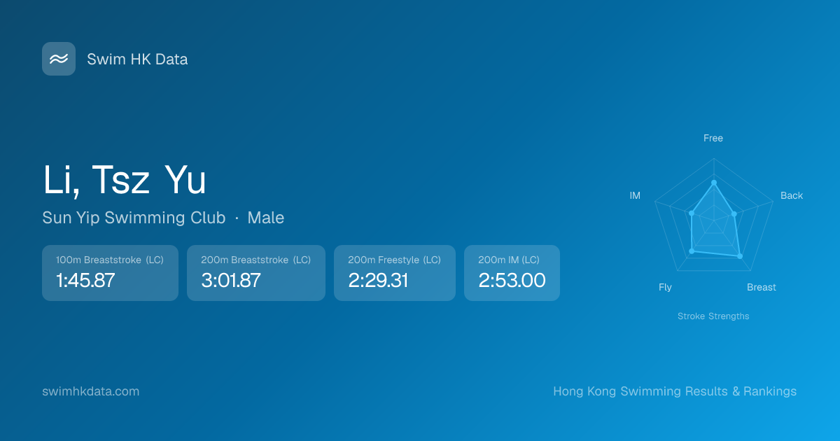 | 50m Butterfly | 32.35 2026-02-06 | 53 | 13 | 2026-02-06 |