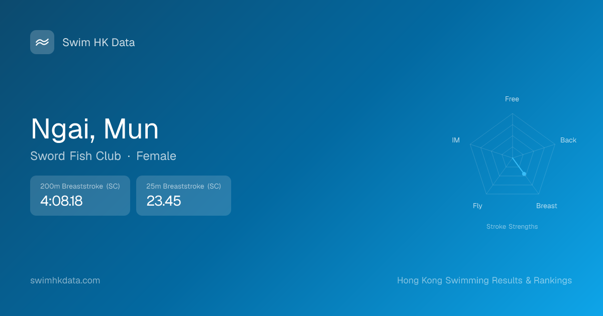 | 200m Breaststroke | 4:08.18 2021-09-29 | 2 | 54 | 2021-09-29 |