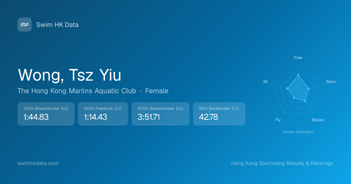 | 50m Freestyle | 34.79 2023-09-25 | 43 | 12 | 2023-09-25 |