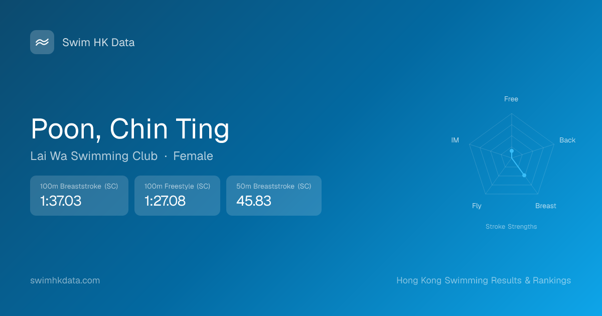 | 50m Breaststroke | 45.83 2023-01-05 | 18 | 10 | 2023-01-05 |