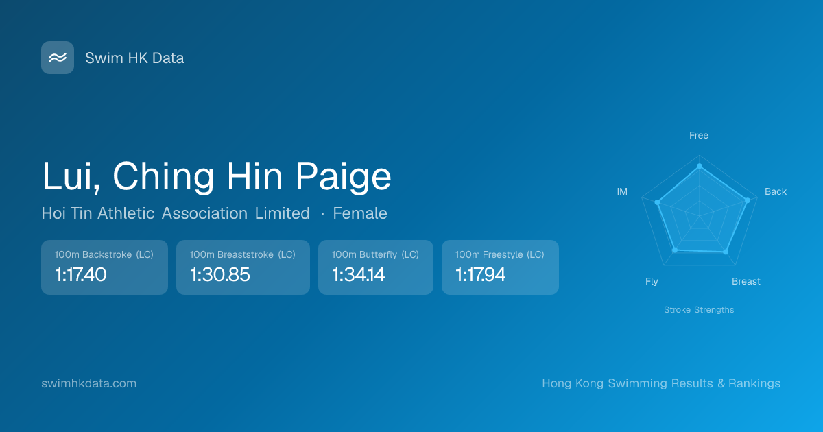 | 50m Butterfly | 34.33 2026-02-06 | 15 | 12 | 2026-02-06 |