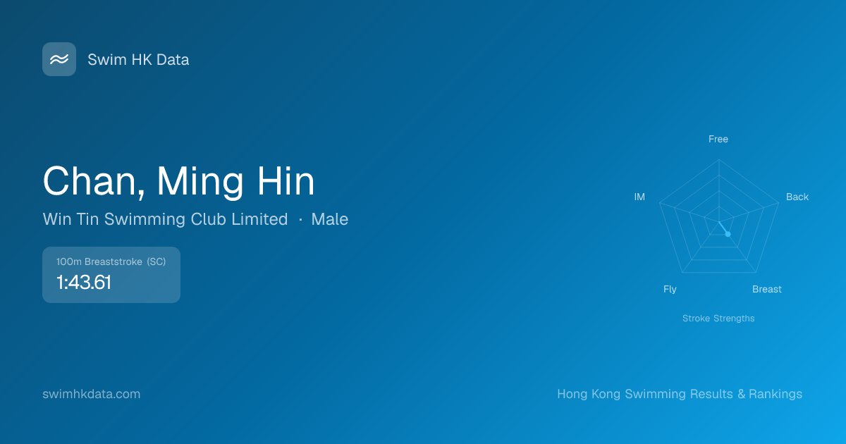 | 100m Breaststroke | 1:43.61 2022-01-04 | 143 | 12 | 2022-01-04 |