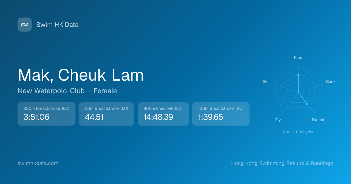 | 200m Breaststroke | 3:51.06 2023-03-27 | 1 | 28 | 2023-03-27 |
