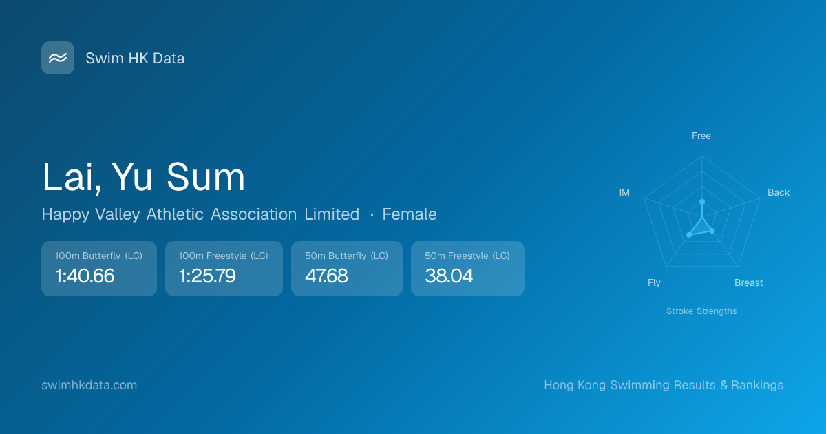 | 50m Butterfly | 39.70 2023-12-12 | 45 | 11 | 2023-12-12 |