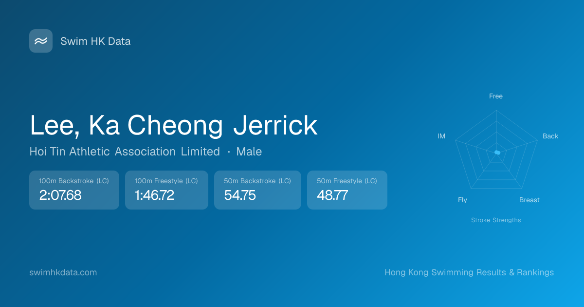 | 50m Backstroke | 54.75 2023-12-05 | 87 | 9 | 2023-12-05 |