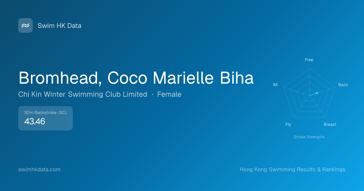 | 50m Backstroke | 43.46 2022-01-04 | 70 | 12 | 2022-01-04 |