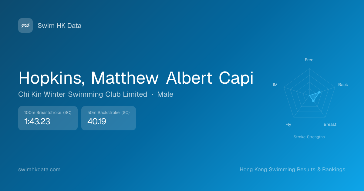| 100m Breaststroke | 1:43.23 2022-01-04 | 107 | 13 | 2022-01-04 |
