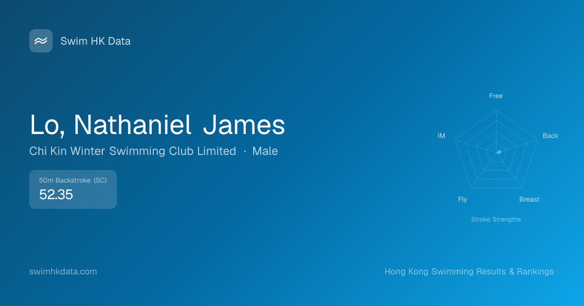 | 50m Backstroke | 52.35 2022-01-04 | 134 | 12 | 2022-01-04 |