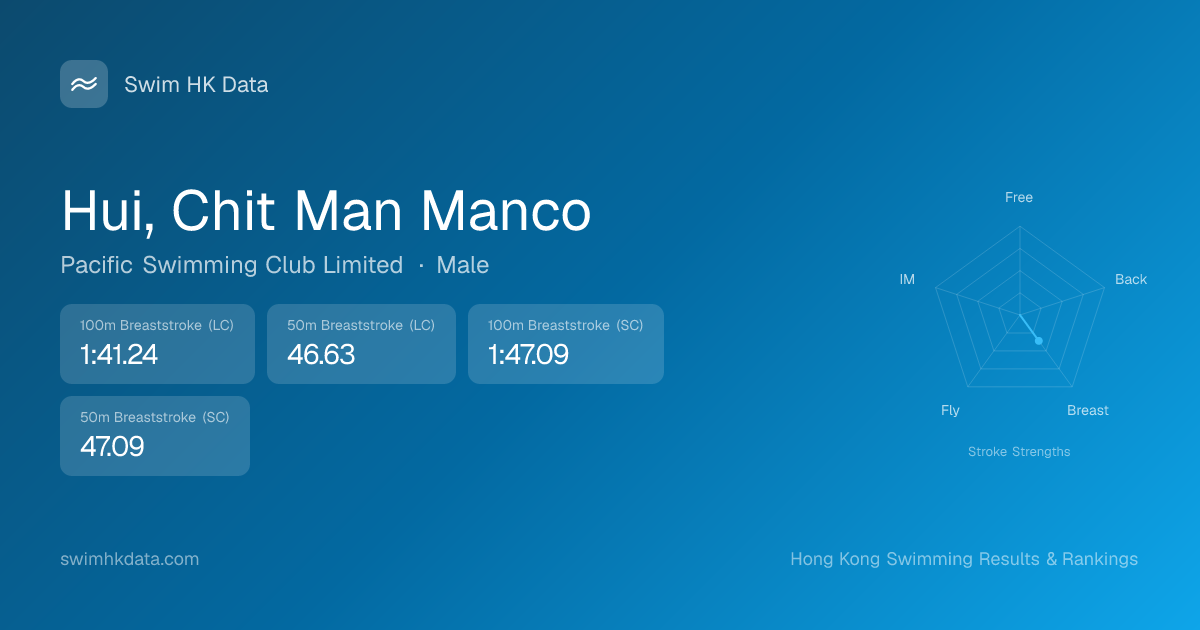 | 50m Breaststroke | 47.09 2024-12-23 | 86 | 13 | 2024-12-23 |