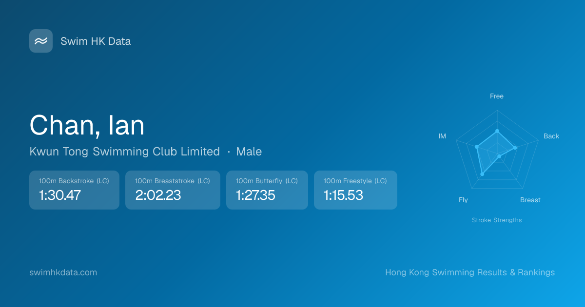 | 100m Individual Medley | 1:18.29 2026-03-31 | 33 | 12 | 2026-03-31 |