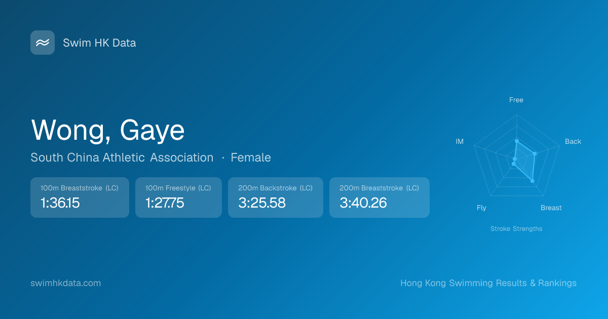 | 50m Breaststroke | 43.70 2026-02-06 | 49 | 12 | 2026-02-06 |
