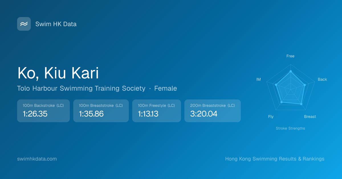 | 50m Freestyle | 31.90 2025-08-27 | 19 | 15 | 2025-08-27 |