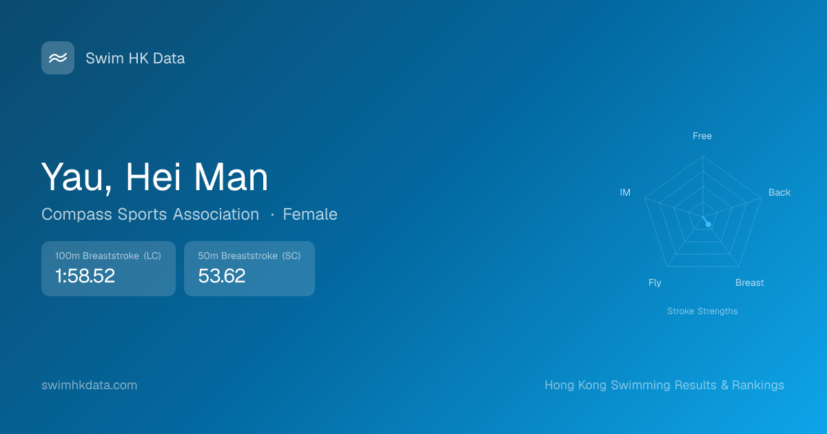 | 50m Breaststroke | 53.62 2023-01-05 | 81 | 10 | 2023-01-05 |