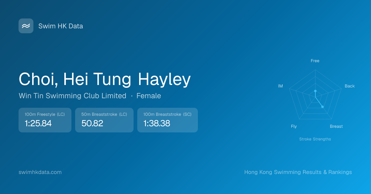 | 100m Breaststroke | 1:38.38 2026-03-04 | 18 | 14 | 2026-03-04 |