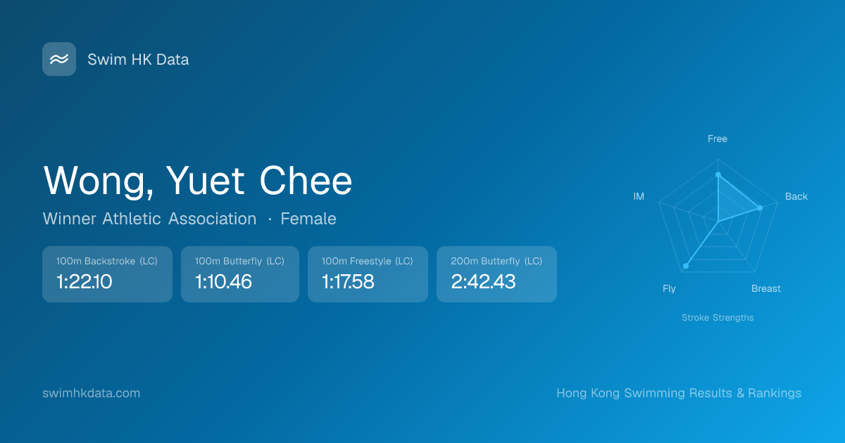 | 100m Butterfly | 1:07.46 2026-02-10 | 3 | 12 | 2026-02-10 |
