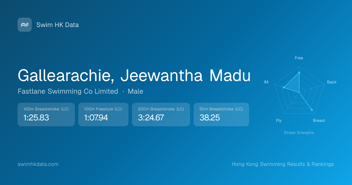| 100m Breaststroke | 1:25.83 2023-12-04 | 3 | 39 | 2023-12-04 |