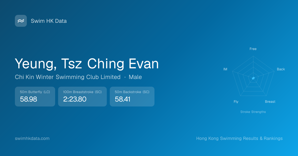 | 50m Butterfly | 58.98 2023-04-27 | 9 | 8 | 2023-04-27 |