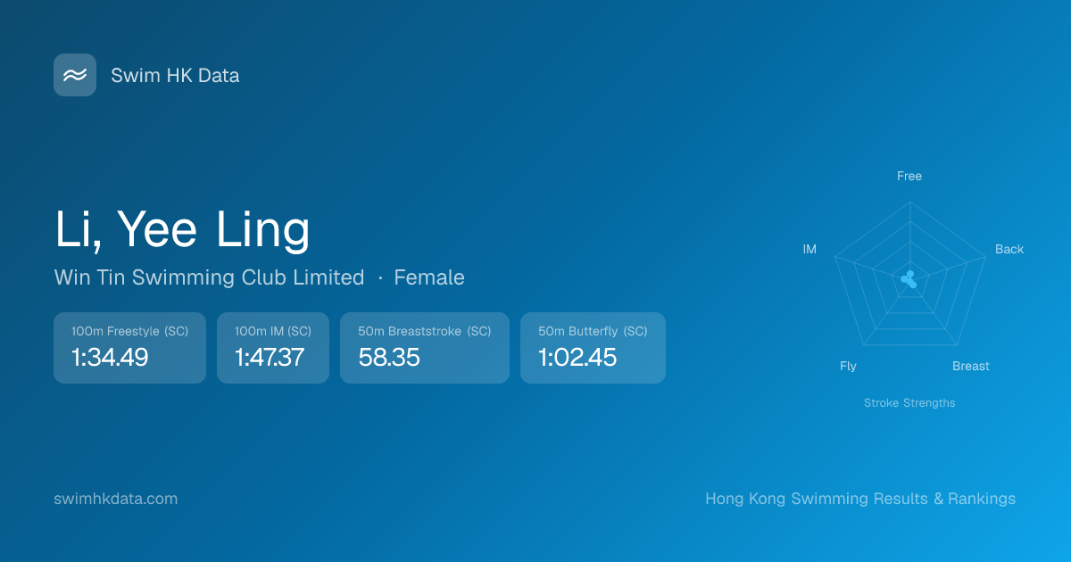 | 50m Butterfly | 1:02.45 2023-01-05 | 90 | 9 | 2023-01-05 |
