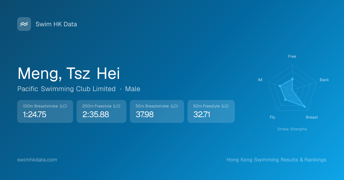 | 50m Breaststroke | 35.94 2026-02-10 | 12 | 11 | 2026-02-10 |