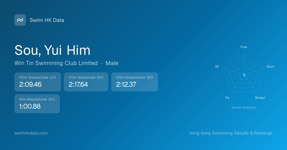 | 50m Breaststroke | 1:00.88 2023-01-05 | 150 | 9 | 2023-01-05 |