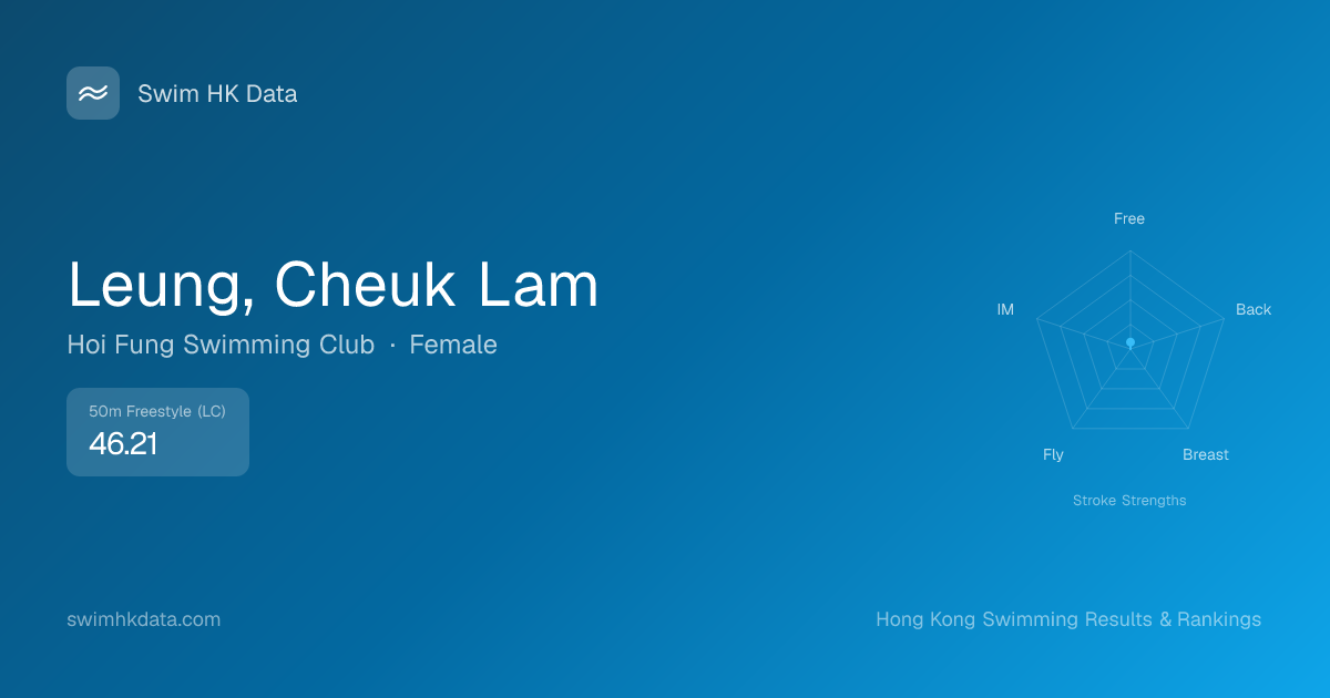 | 50m Freestyle | 46.21 2022-11-15 | 85 | 12 | 2022-11-15 |