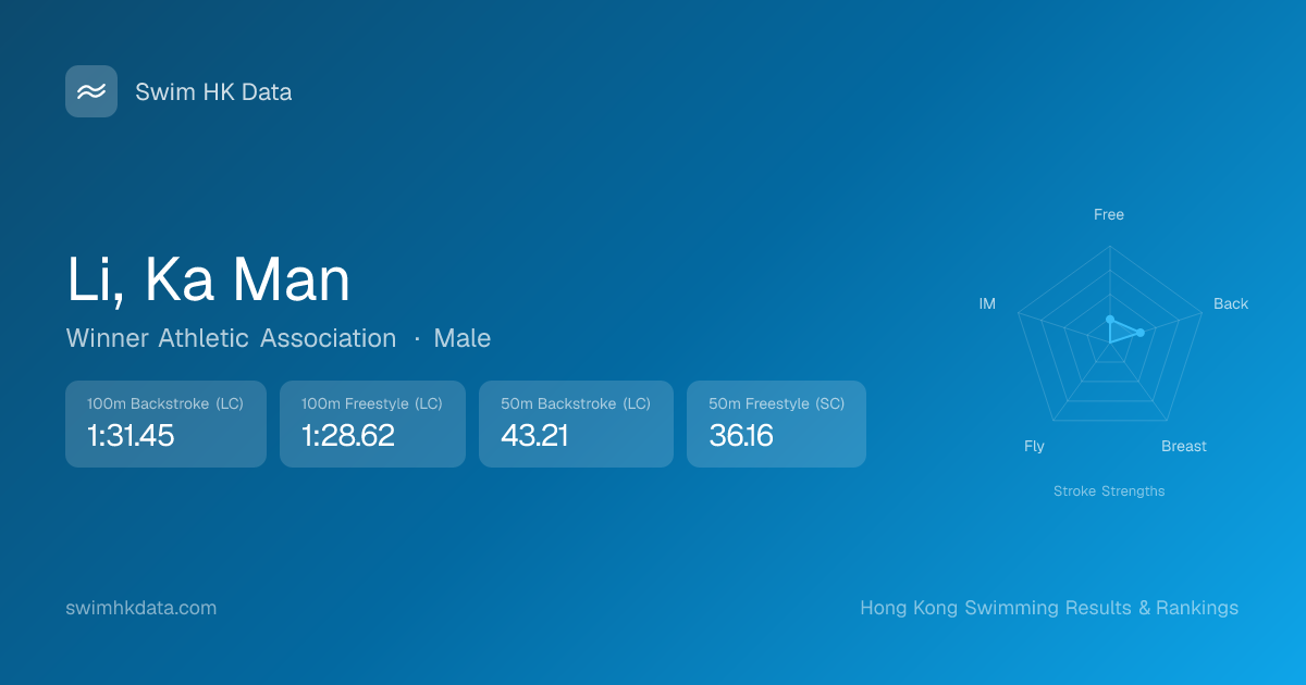| 50m Freestyle | 36.16 2026-03-04 | 78 | 10 | 2026-03-04 |