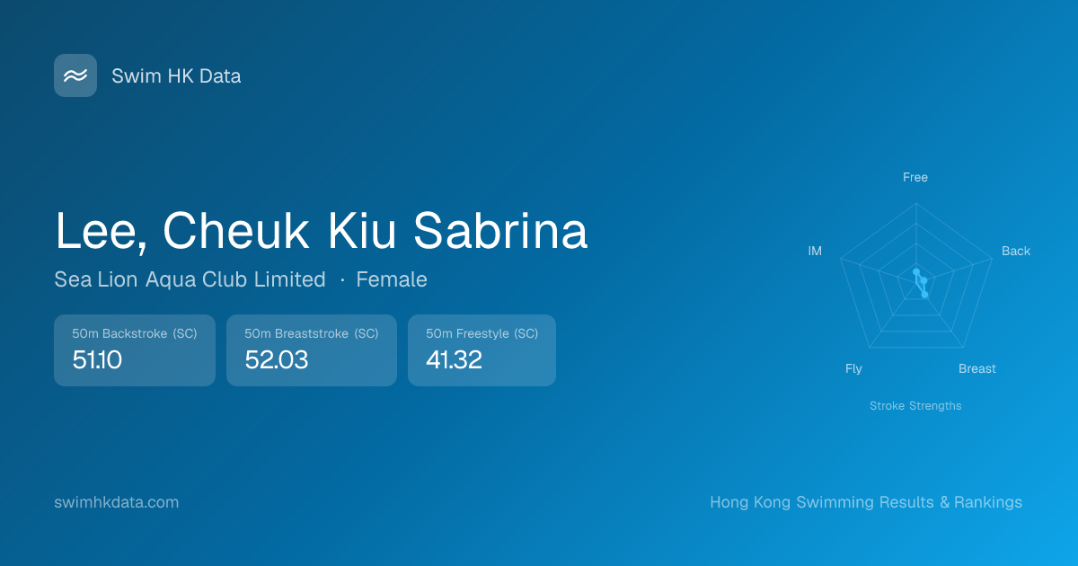| 50m Backstroke | 51.10 2023-01-30 | 67 | 12 | 2023-01-30 |