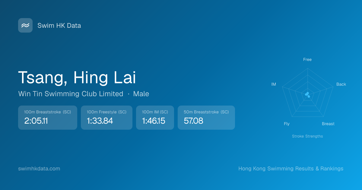 | 100m Breaststroke | 2:05.11 2023-01-30 | 95 | 9 | 2023-01-30 |