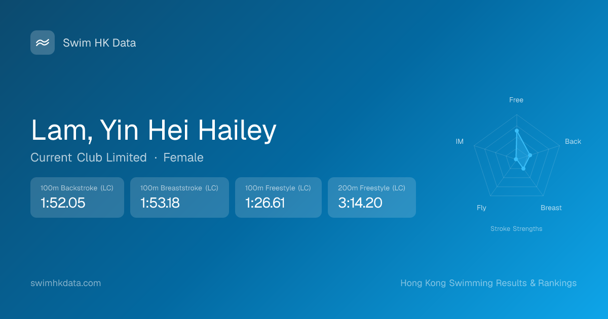 | 50m Freestyle | 31.90 2026-03-04 | 13 | 13 | 2026-03-04 |