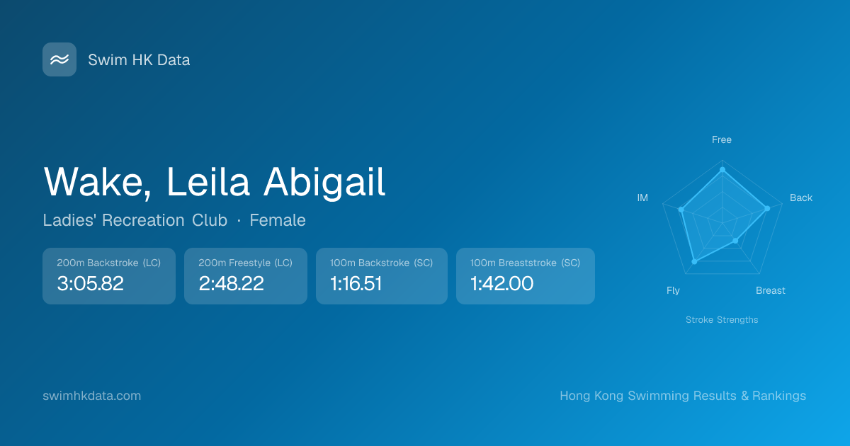 | 100m Backstroke | 1:16.51 2026-02-06 | 5 | 12 | 2026-02-06 |