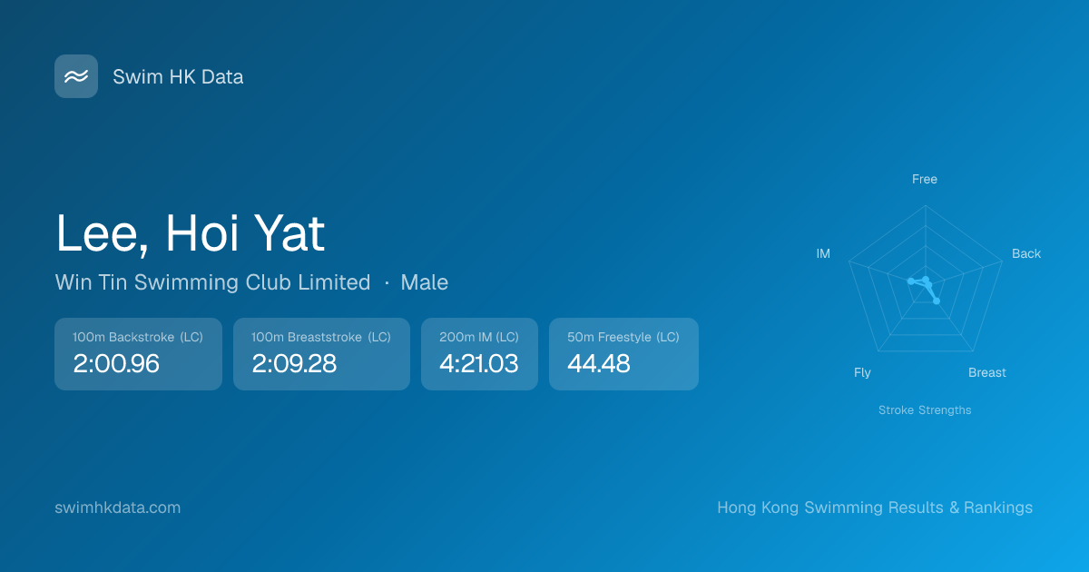 | 50m Freestyle | 44.48 2023-09-25 | 102 | 9 | 2023-09-25 |