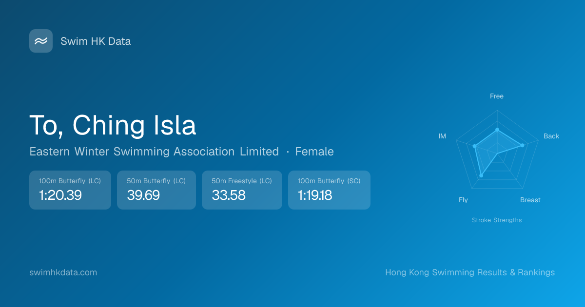 | 100m Butterfly | 1:19.18 2026-02-10 | 10 | 10 | 2026-02-10 |
