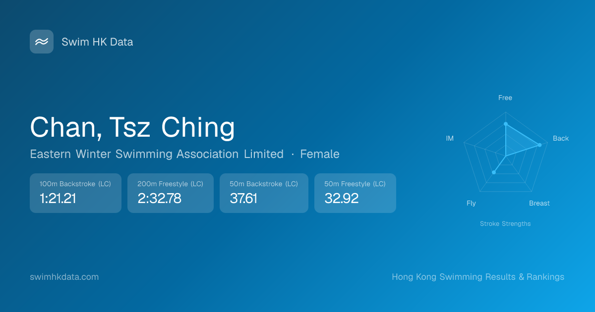 | 50m Backstroke | 37.61 2025-09-07 | 41 | 11 | 2025-09-07 |