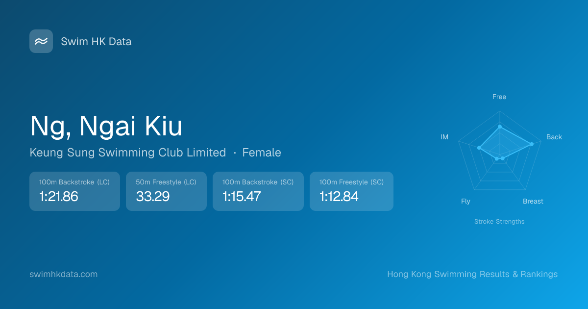 | 100m Freestyle | 1:12.84 2026-03-16 | 50 | 12 | 2026-03-16 |