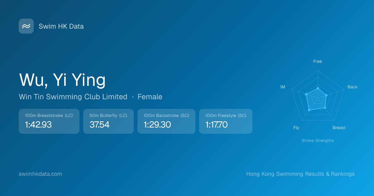 | 50m Butterfly | 36.47 2026-02-06 | 17 | 15 | 2026-02-06 |