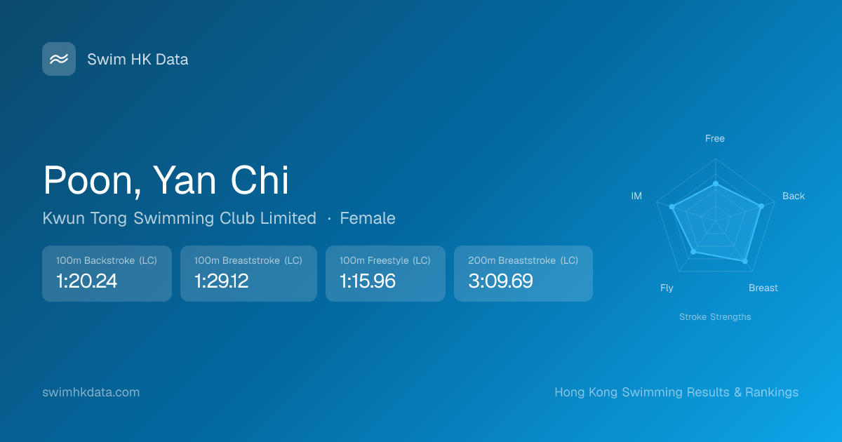 | 100m Backstroke | 1:17.19 2026-02-06 | 20 | 13 | 2026-02-06 |