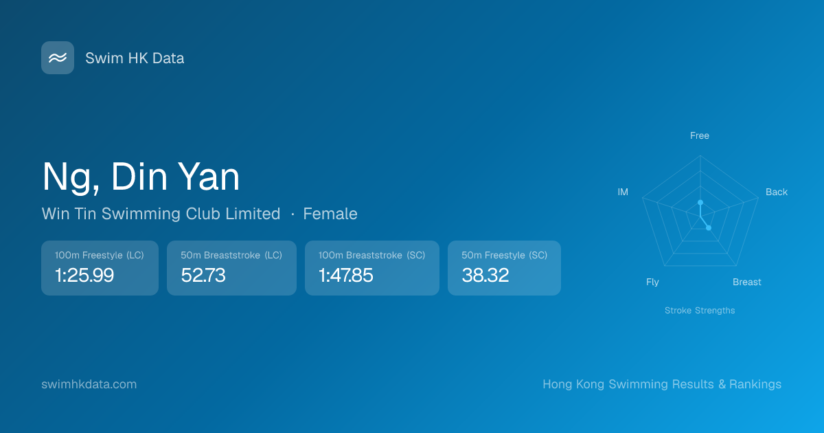 | 100m Freestyle | 1:25.99 2025-06-09 | 22 | 10 | 2025-06-09 |