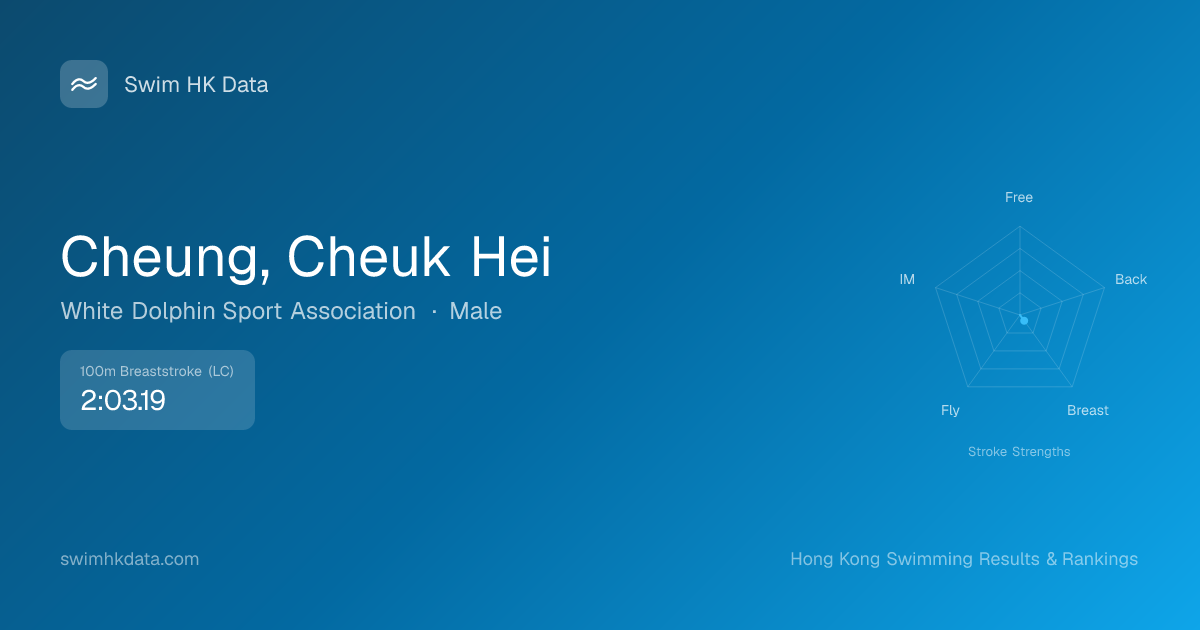 | 100m Breaststroke | 2:03.19 2023-05-02 | 40 | 10 | 2023-05-02 |