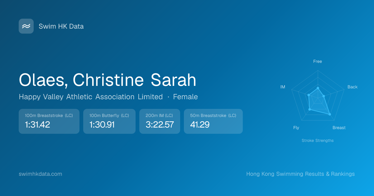 | 50m Butterfly | 37.01 2025-01-22 | 20 | 10 | 2025-01-22 |
