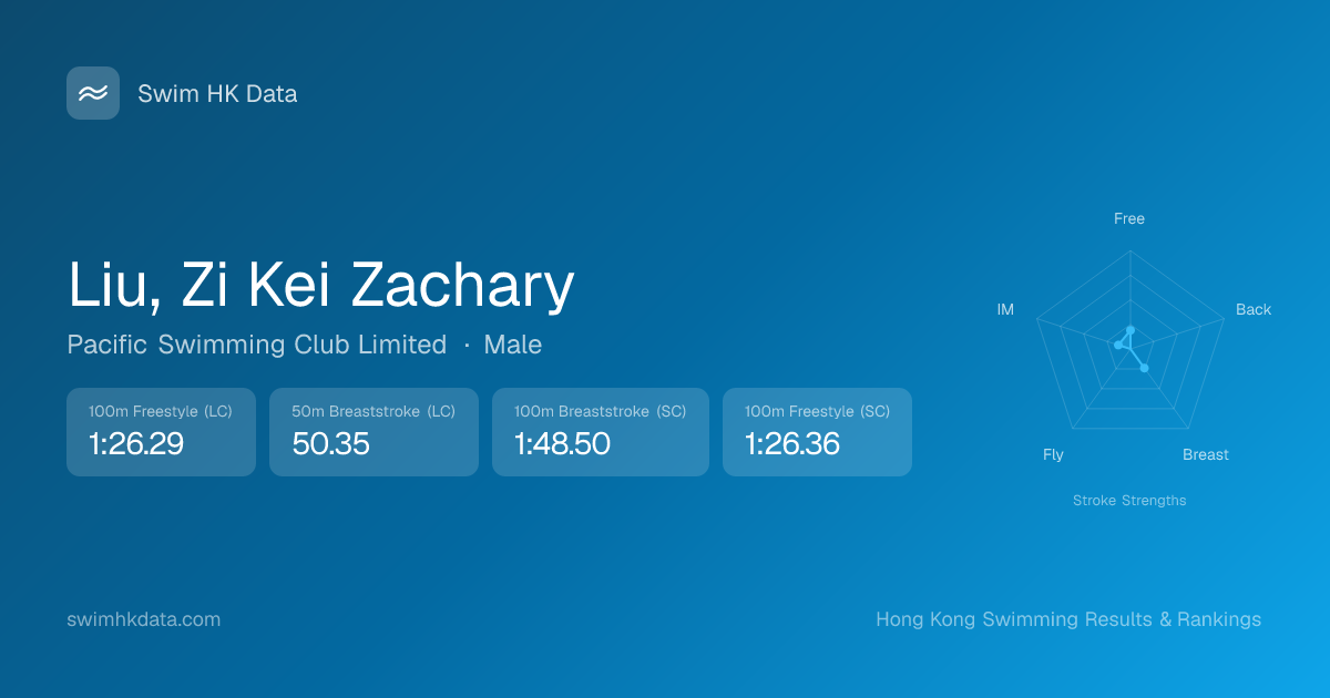 | 100m Freestyle | 1:26.29 2023-12-05 | 43 | 10 | 2023-12-05 |