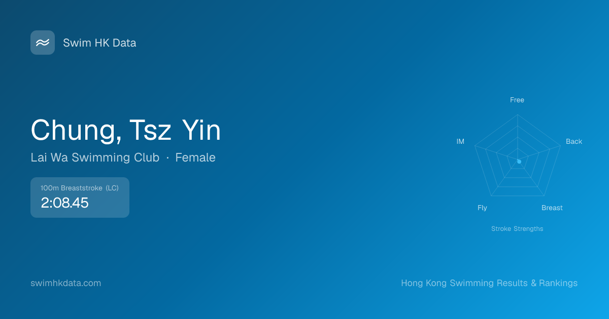 | 100m Breaststroke | 2:08.45 2023-05-02 | 35 | 9 | 2023-05-02 |